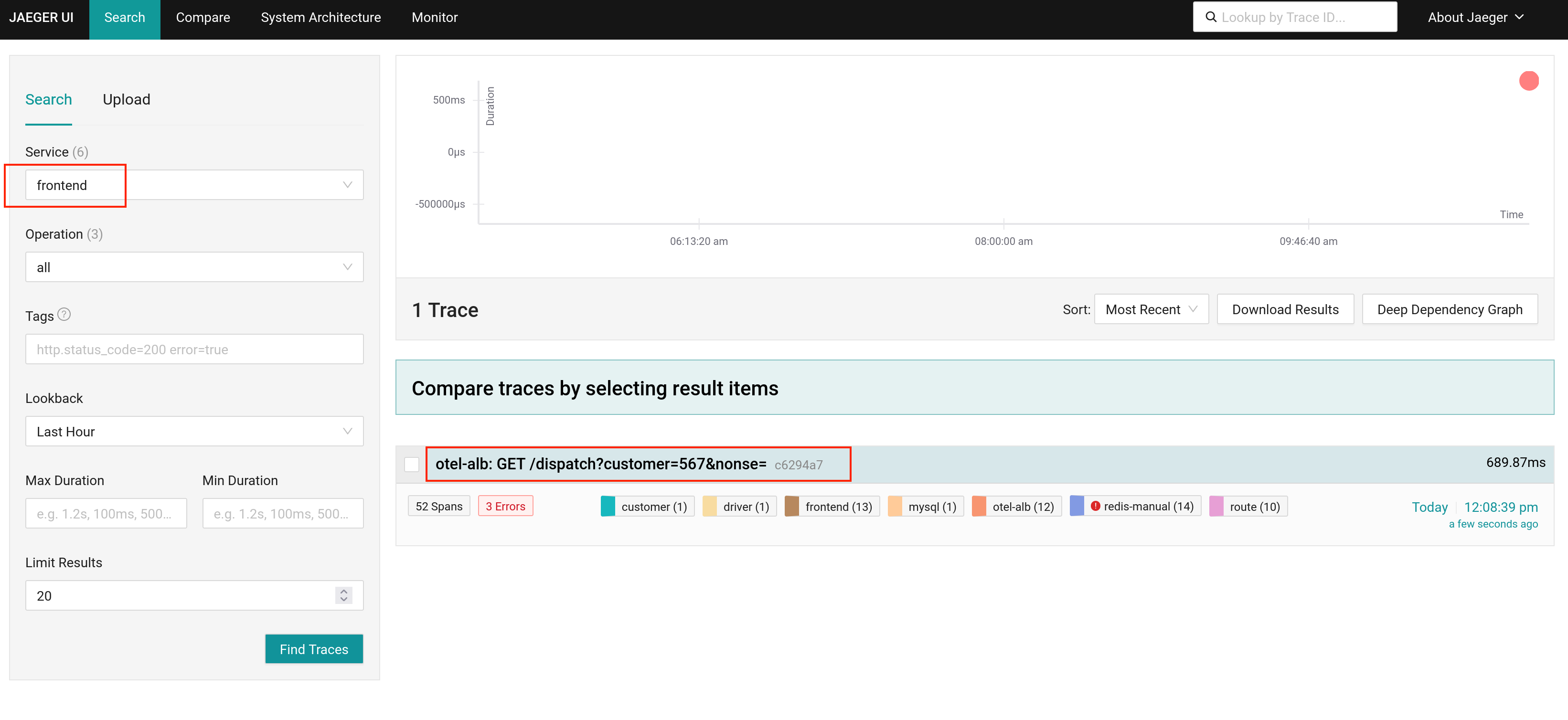 6. Open the access address of Jaeger obtained in Step 3 to view the results.